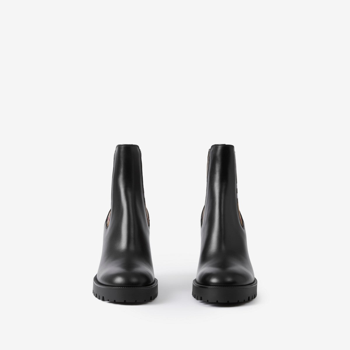 - Italian-made ankle boots in smooth leather with Burberry Check side panels. The design is set on a block heel and has a serrated tread for grip.