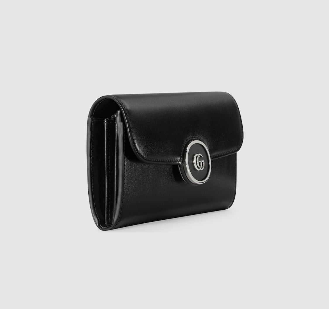 Gucci Model : 762167 Country of Origin : Italy === Design === Type : Long wallet (bi-fold) Gender : Women,Men Material : Leather Color : Black === Size === Size (HxWxD) : 10cm x 19cm x 3cm / 3.93'' x 7.48'' x 1.18'' === Included Items === Accessories : Box, Dust bag can add chain / insert to make into a woc
