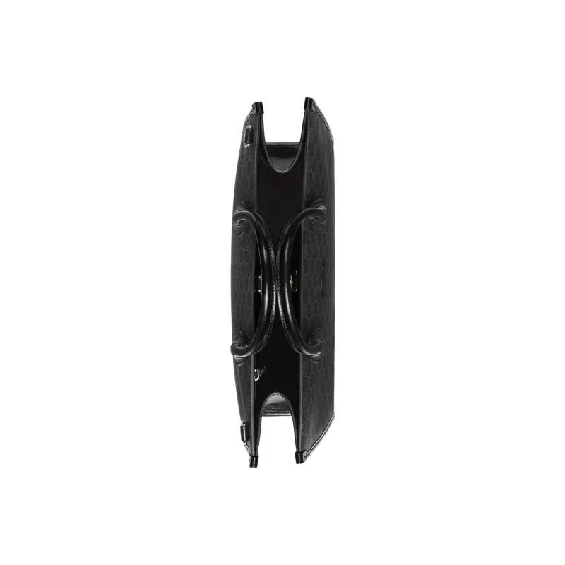 GUCCI GG Retro Series Leather Tote Bag/Shoulder Bag /Crossbody Bag Handbag Medium Size This is an authentic GUCCI GG Supreme Monogram Azalea Calfskin Medium Retro Interlocking G Vertical Tote Bag in Black. This stylish tote is crafted of classic Gucci GG supreme monogram-coated canvas in black. The bag features black leather handles, an optional adjustable shoulder strap, and silver hardware. The hook closure opens to a black fabric interior with zippered compartment and a zipper pocket.