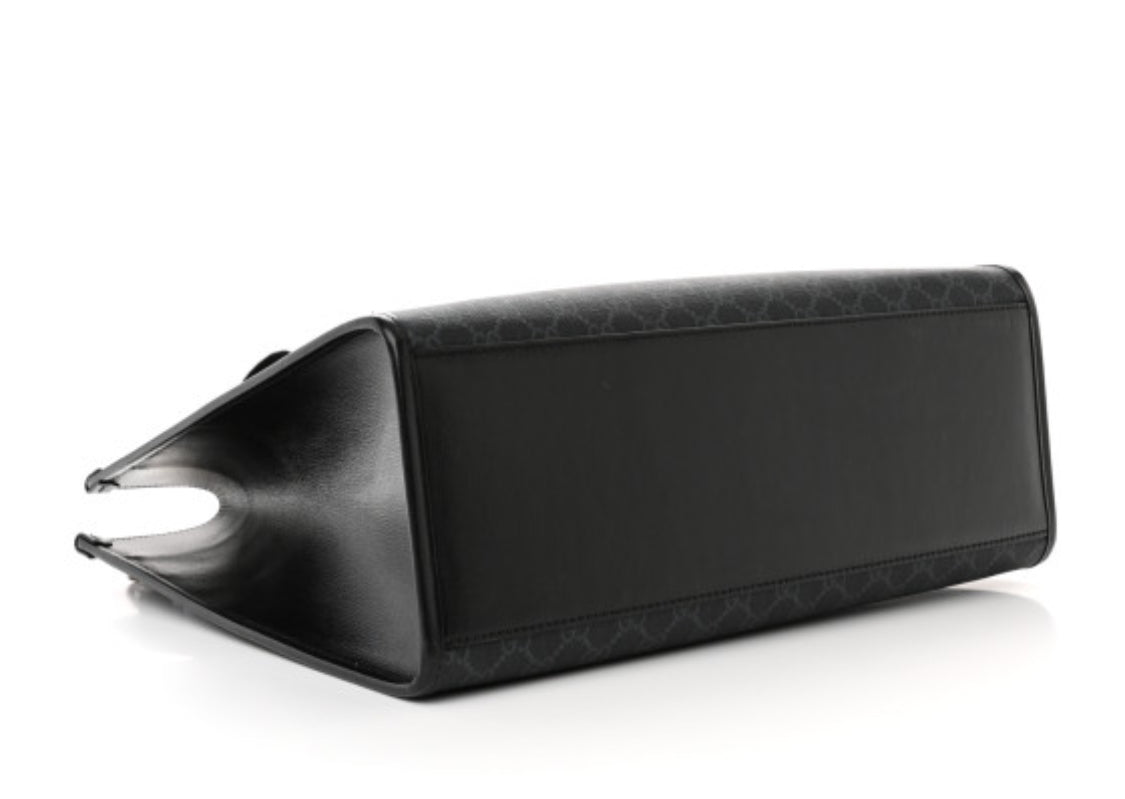 This is an authentic GUCCI GG Supreme Monogram Azalea Calfskin Web Medium Retro Interlocking G Tote Bag in Black. This stylish tote is crafted of classic Gucci GG supreme monogram-coated canvas. The bag features black leather handles, an optional adjustable shoulder strap, and silver hardware. The bag has an open top with a black microfiber interior and a zipper pocket.