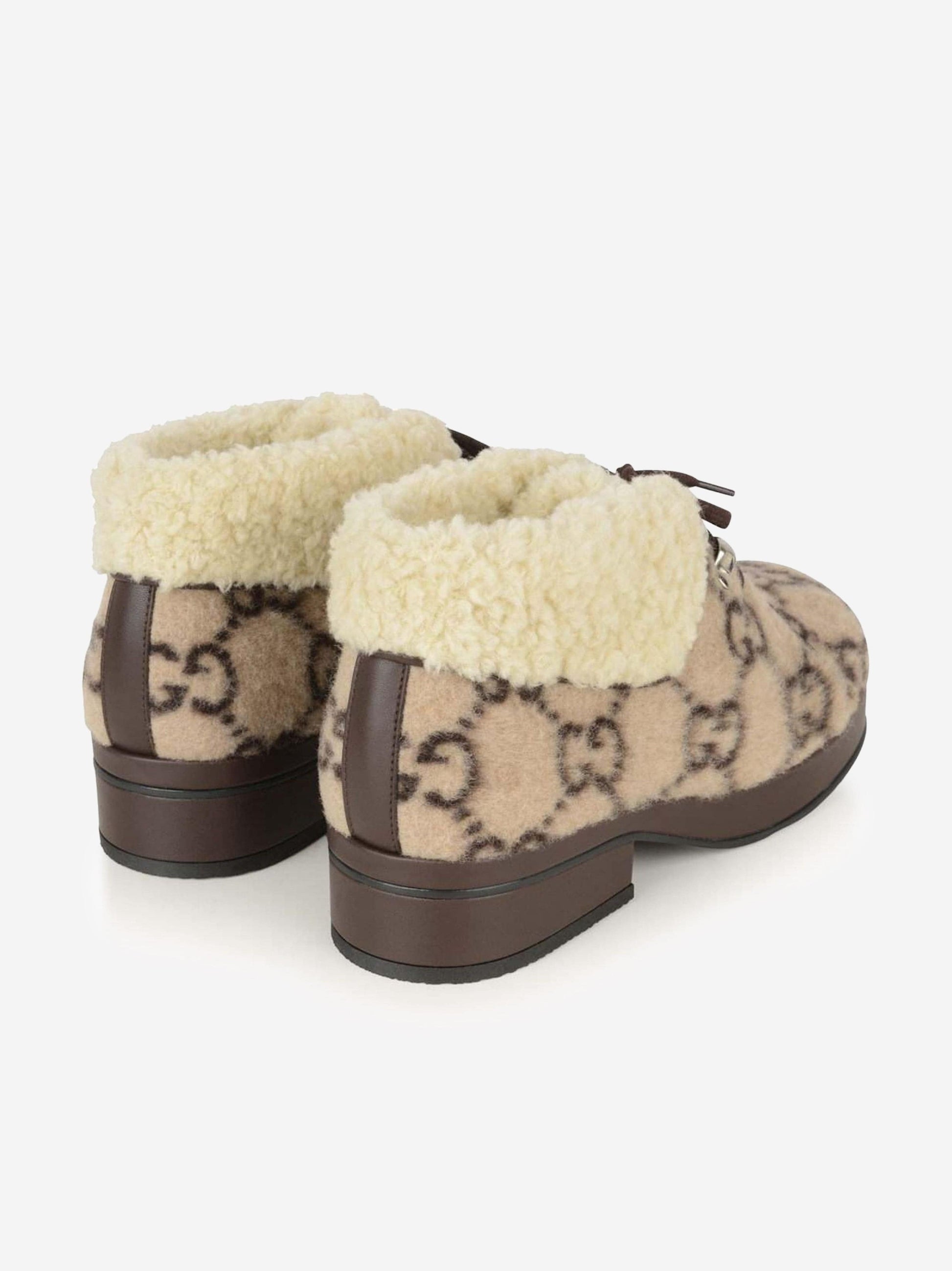 revitalise your girl's footwear collection with these luxurious GUCCI Beige GG Wool Boots. Let her step out in style! Order now!