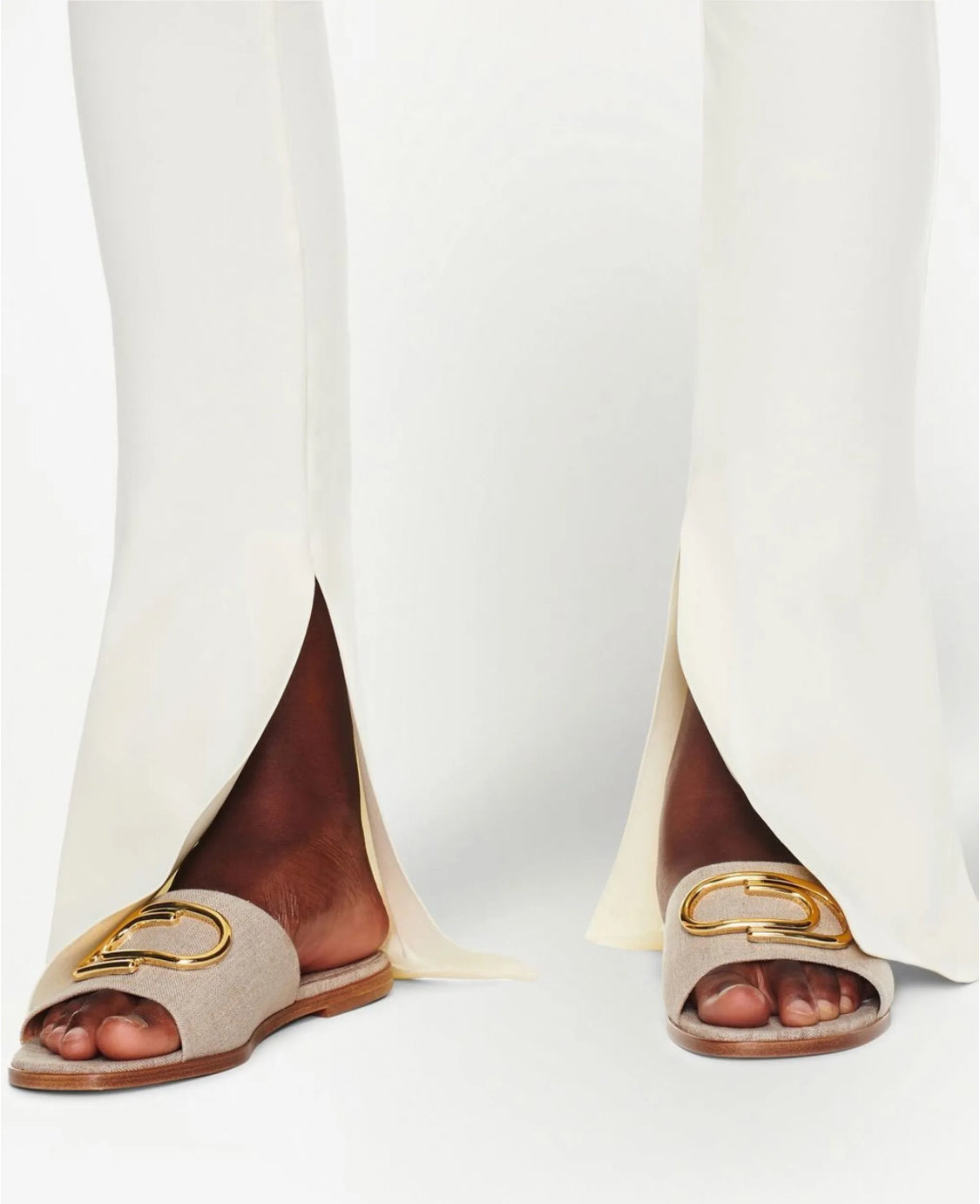 Off-White takes an elegant approach to footwear with these slides, crafted from beige-hued linen.